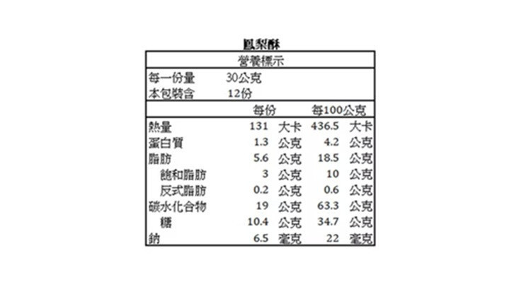 內容物:餅皮 - 麵粉、奶油、奶水、雞蛋、糖粉、 奶粉、鹹鴨蛋黃