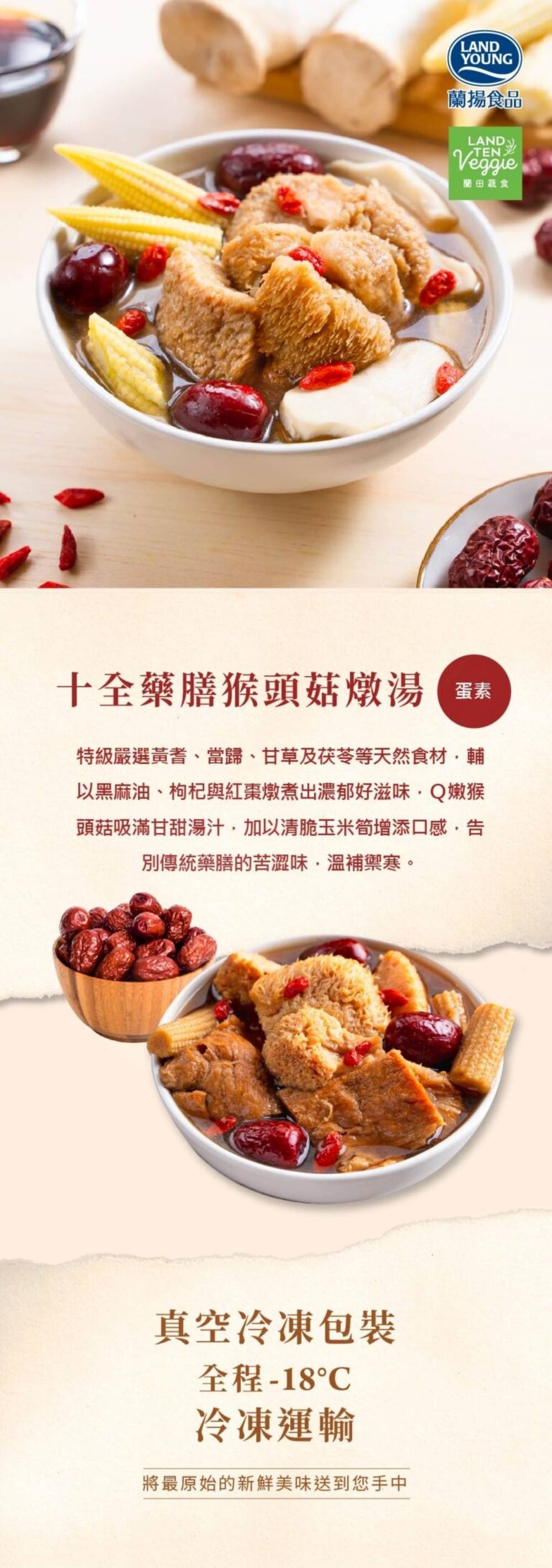 【蘭揚食品】健康養生素中式湯品(8件組)_養生素佛跳牆380gX2件+麻油堅果猴頭菇300gX2件+泰式酸辣蘑菇湯 300gX2件+十全藥膳猴頭菇300gX2件