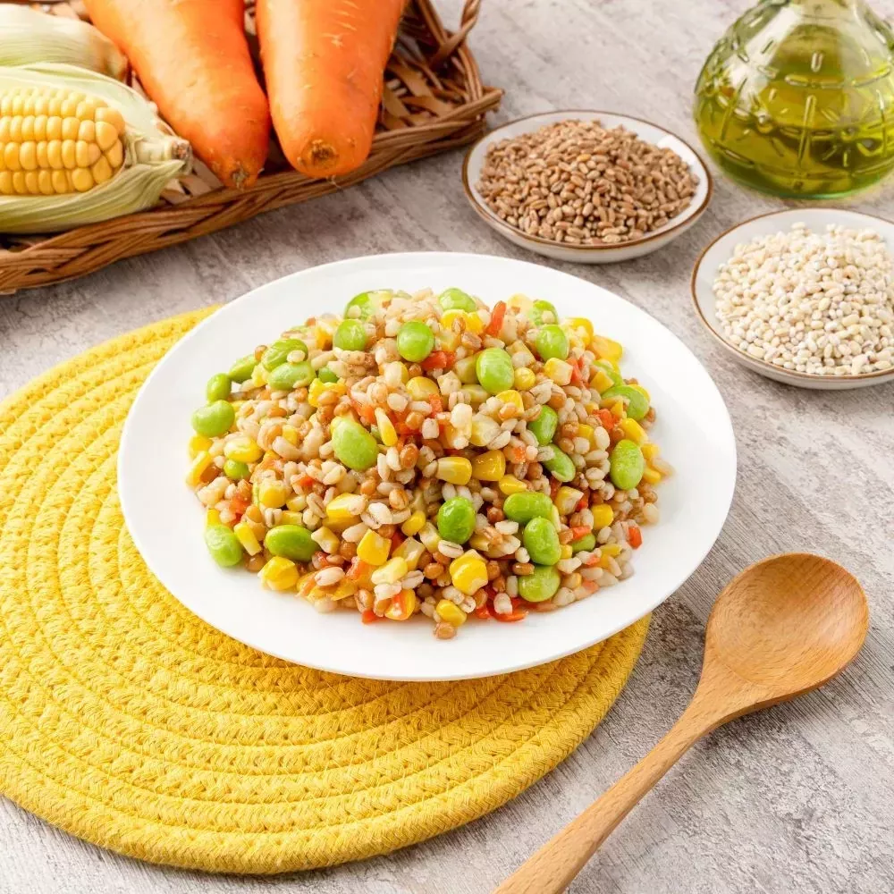 黃金大麥毛豆200G-全素多層次的口感及繽紛色彩,拌入初榨橄欖油保留了食材本身的香甜風味,每口都越嚼越香