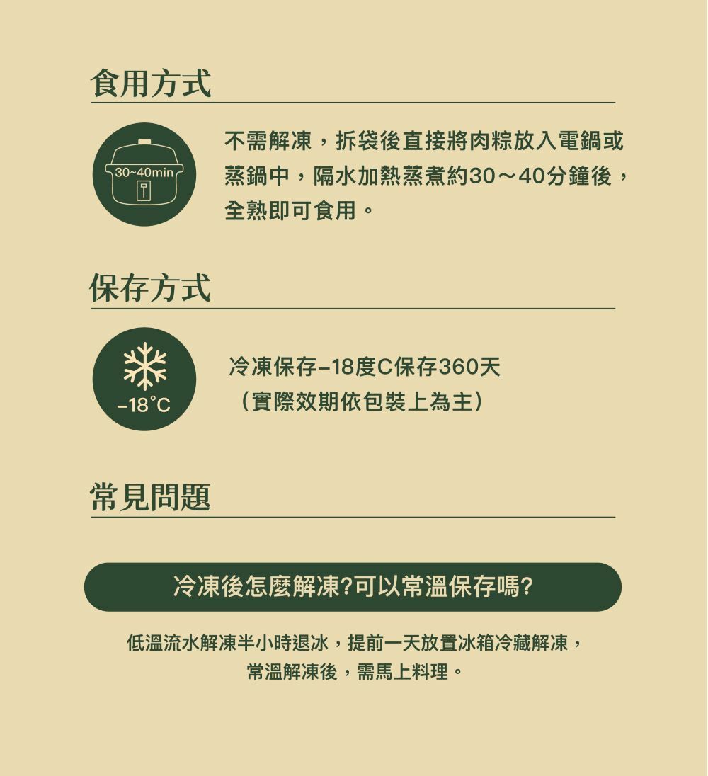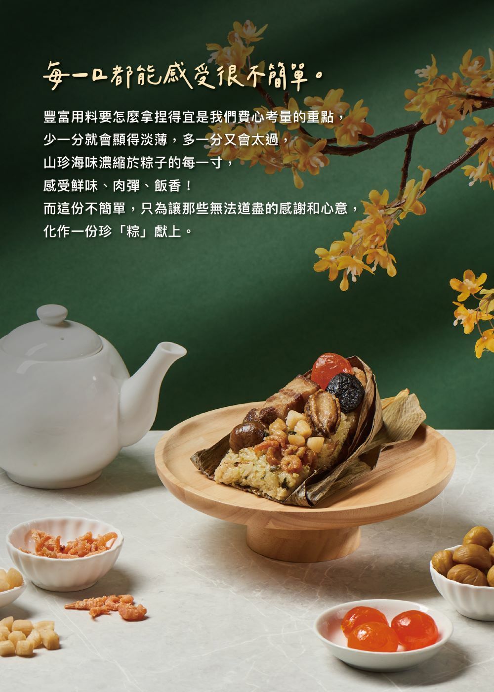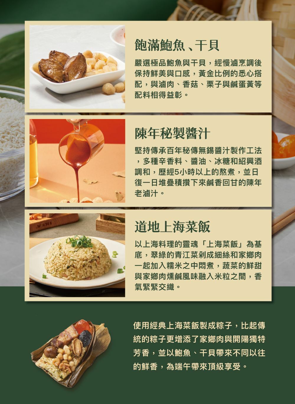 尖糯米、豬肉(產地:台灣)、鮑魚、干貝、鹹蛋黃、
