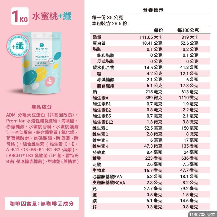THE VEGAN 高纖植物優蛋白_1KG/袋裝