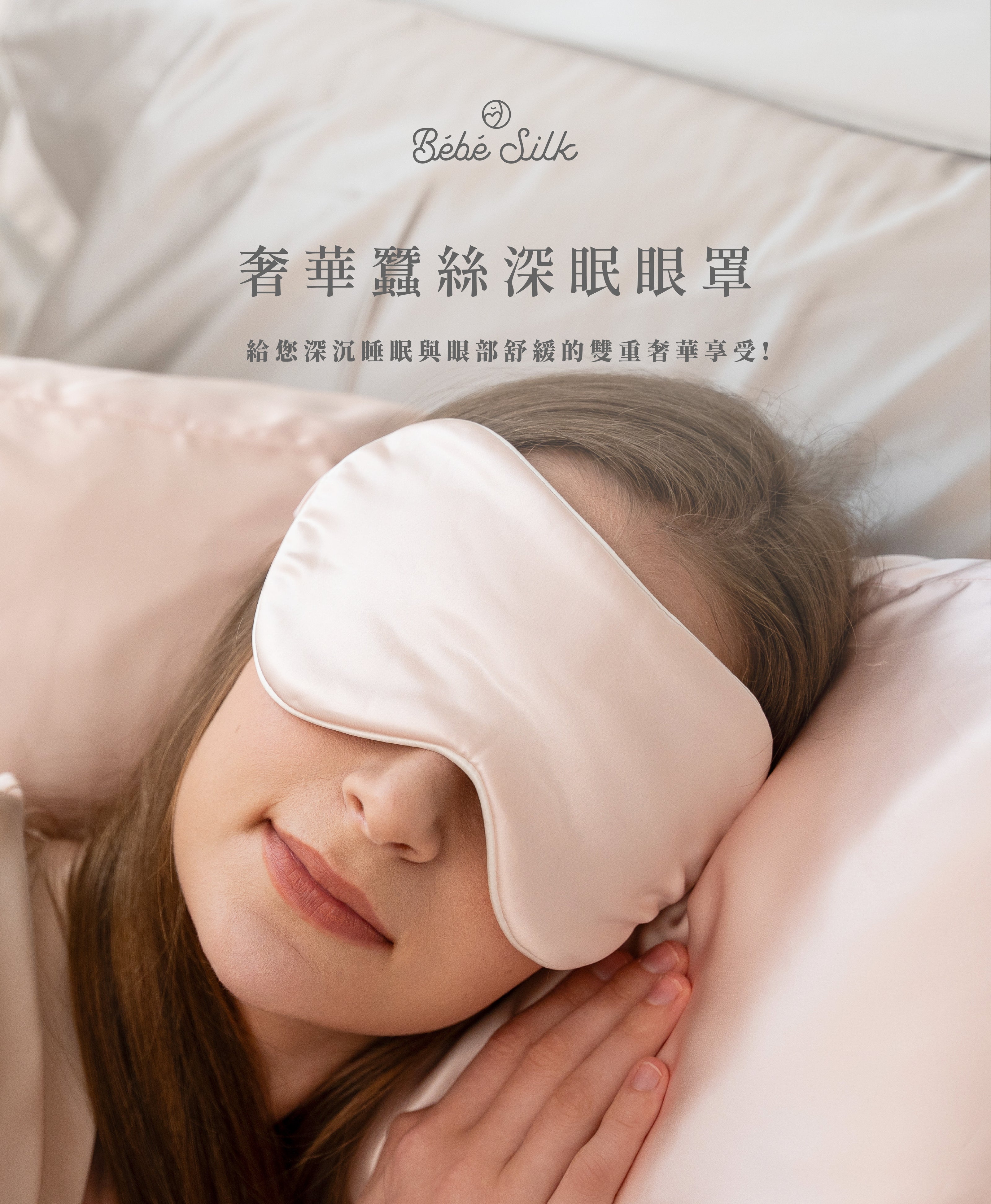 BEBESILK真絲眼罩,採用22 Momme桑蠶絲,柔軟親膚,減少光源干擾,助您快速入眠。