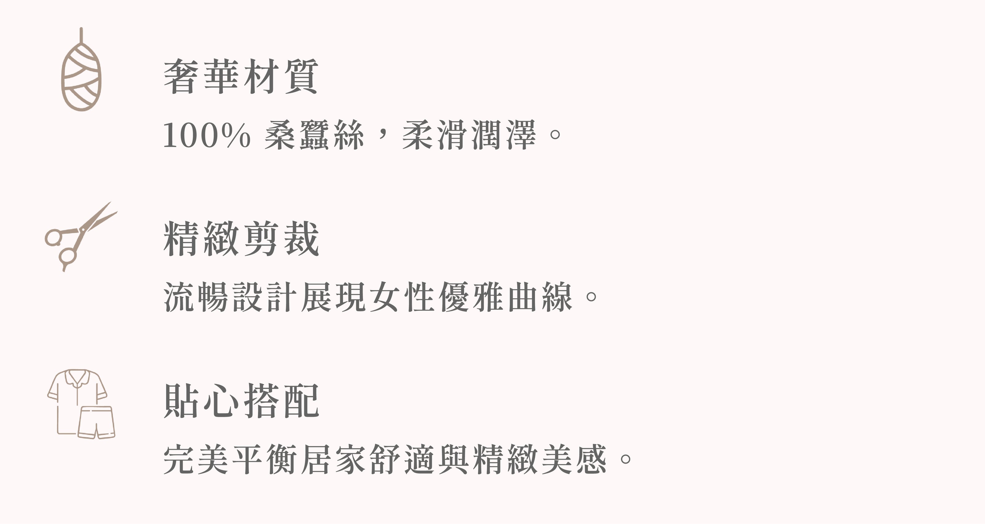 真絲睡衣系列隨附品牌緞面束口袋,輕巧便攜,旅行收納更方便。