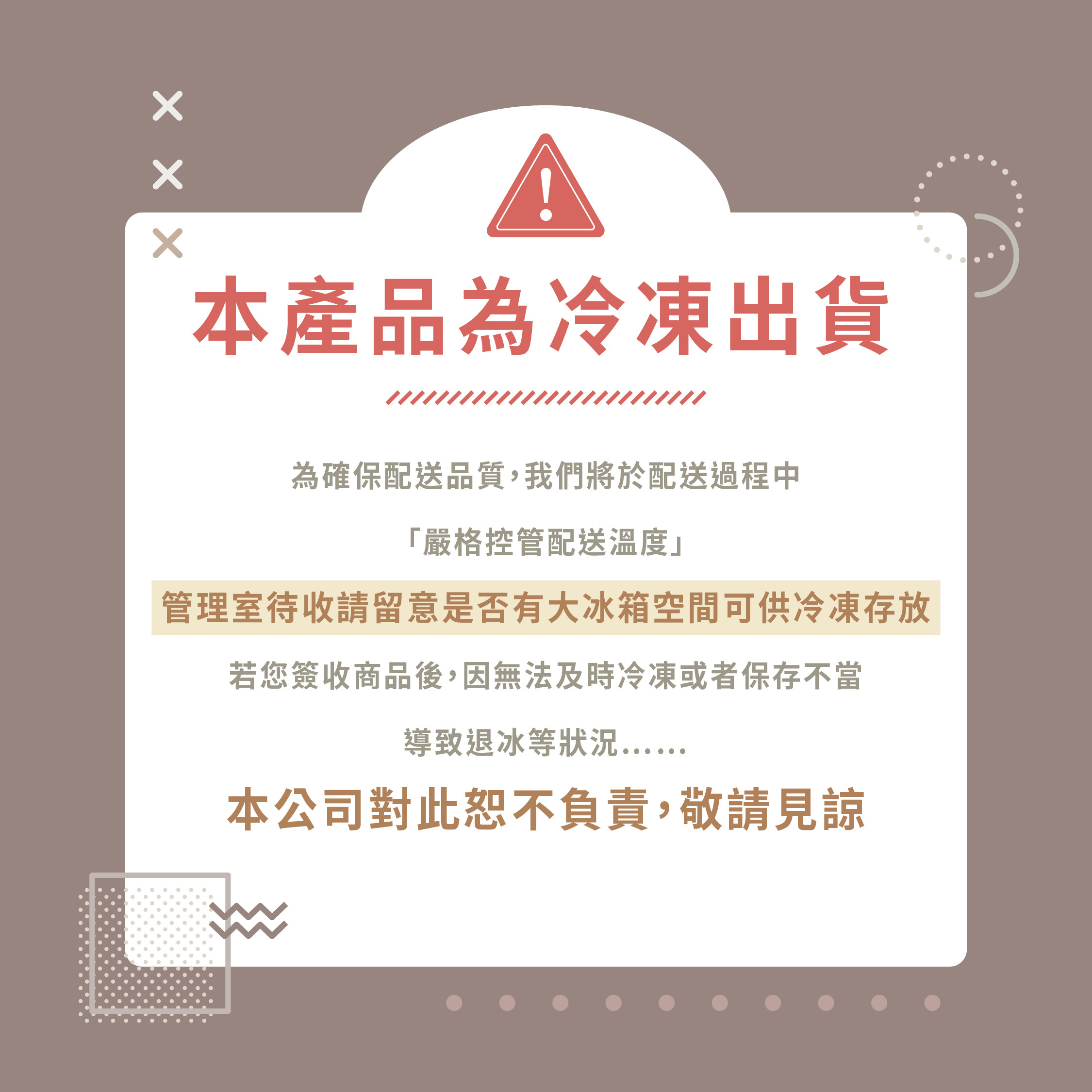 !!!食品或生鮮商品屬消耗性商品,商品屬性特殊或有保存期限等問題,故一律售出後概不接受退貨,訂購時請同意此條款後做訂購,除商品本身瑕疵或運送過程而造成的損毀,才可接受您的退貨申請。