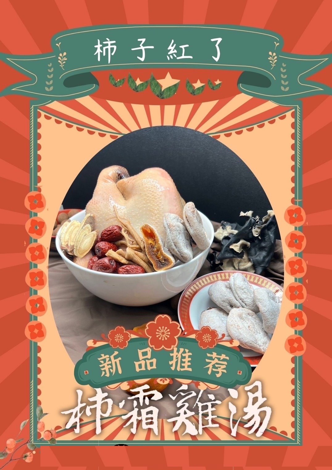 主成份:嚴選溫體全雞、霜降柿餅、人蔘、紅棗、黃耆、枸杞