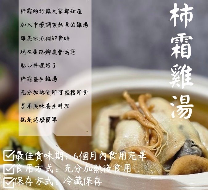 柿霜雞湯調理包讓職業婦女、外食族打開包裝充份加熱後即能輕鬆上桌即食