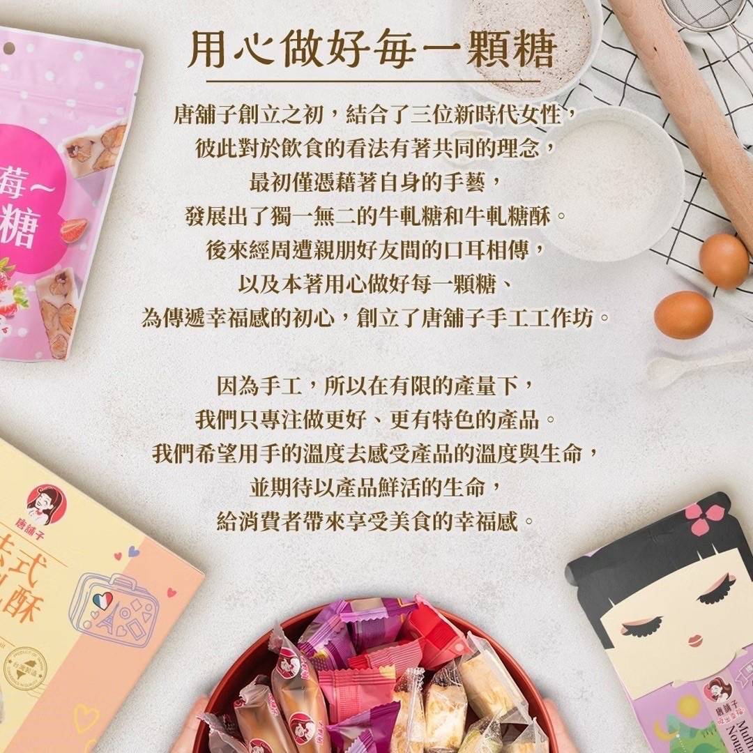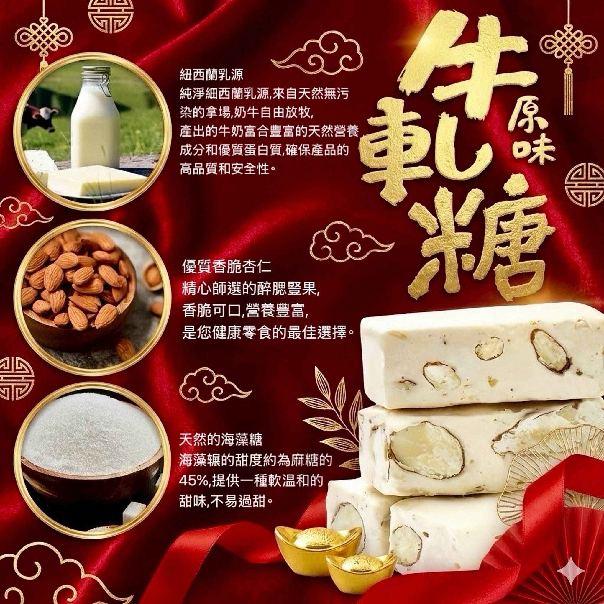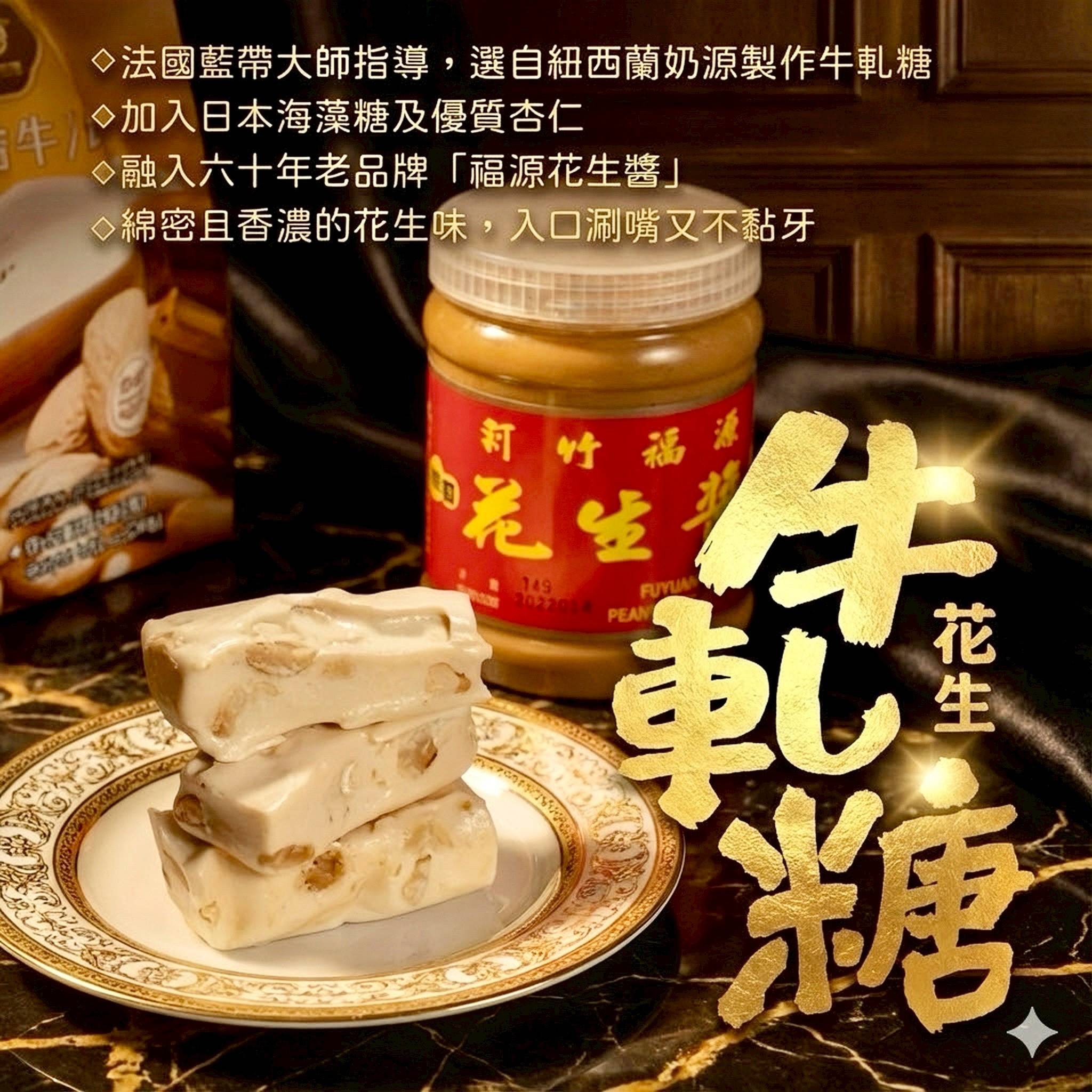 內含: 原味牛軋糖90g、花生牛軋糖90g、花生牛軋巧酥90g、南棗核桃糕90g